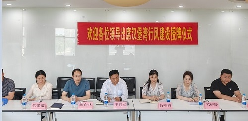 为进一步加强郑州市市场监管系统行风建设工作,5月14日,郑州市市场监管系统行风建设二七区观测点挂牌仪式在郑州汉堡湾食品有限公司举行。郑州市场监管局二级高级主办王拥军,市局人事处处长肖燕丽,副处长李青,二七区市场监管局副局长陈向林参加挂牌仪式。